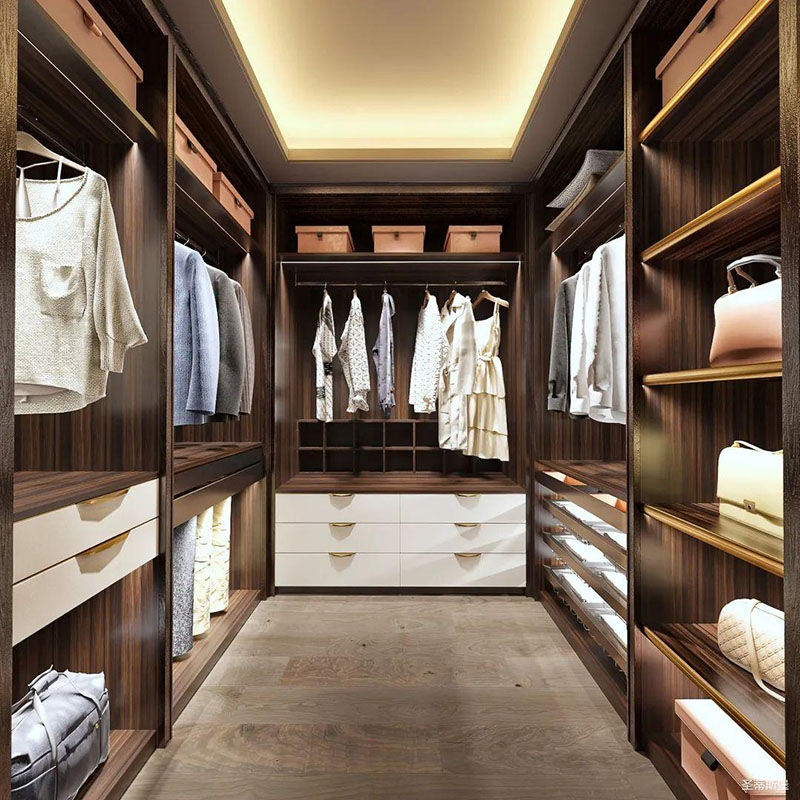 衣帽间充分将生活中的“简”融入到设计中,一眼便可望尽的小隔间,把生活中的便利藏进了每个小细节里。舒适的拼接配色,演绎了意式极简里的高端与奢华,温暖的灯光点缀,衬托出温馨的更衣氛围,让你拥有丰富多彩的着衣体验。