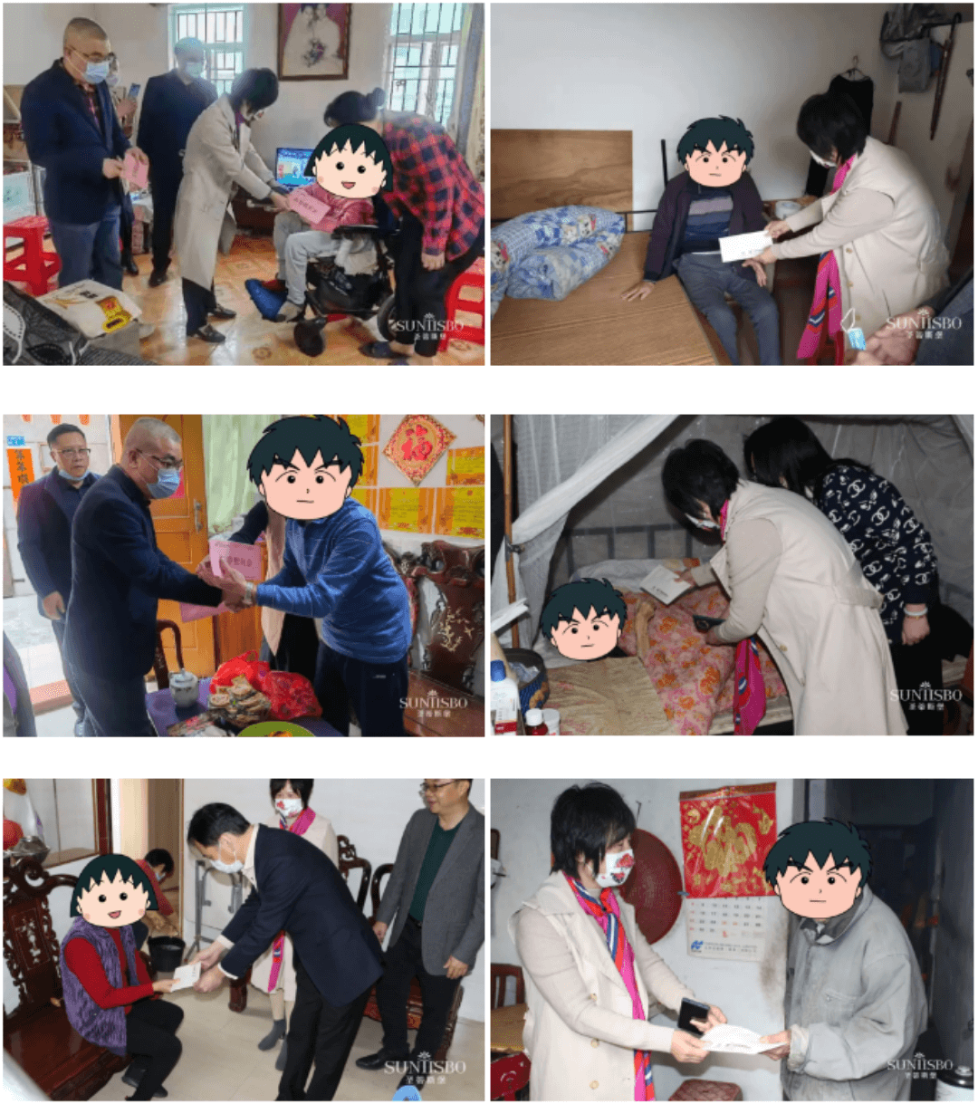 寒冬腊月,春节将至。2022年1月17、18日,BB贝博艾弗森集团副董事长梁碧霞女士亲自带领集团员工分别前往常平土塘社区、虎门镇赤岗社区、虎门镇南面社区,探望慰问孤寡老人、残疾人和社区寿星,并为他们送去了春节礼品和慰问金,为他们送去一年一度的新春关怀和温暖。在疫情的严防中,让他们体会到社会和企业的悉心关怀,感受到别样温暖的春节氛围。